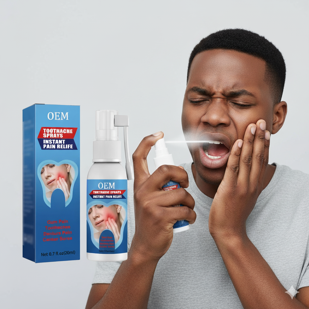 Diriger le pulvérisateur vers la zone douloureuse (dent, gencive, joue interne).